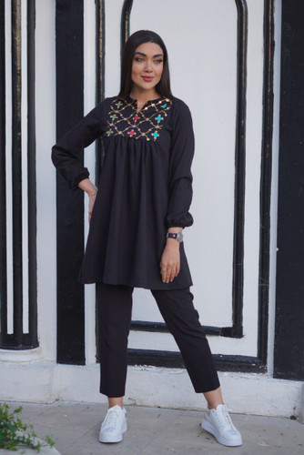 مانتو کوتاه سوزن دوزی ایران ابریشم از جنس لینن