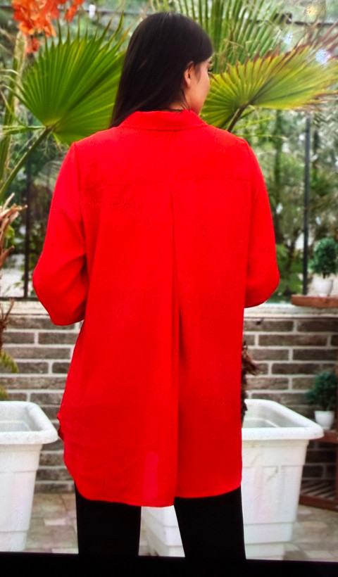 با این شومیز قرمز خوشرنگ، استایلی جسورانه و در عین حال کلاسیک را تجربه کنید. این مدل با طراحی خاص و قد ۸۰ سانتیمتر، انتخابی عالی برای خانمهایی است که به دنبال راحتی و پوشش هستند