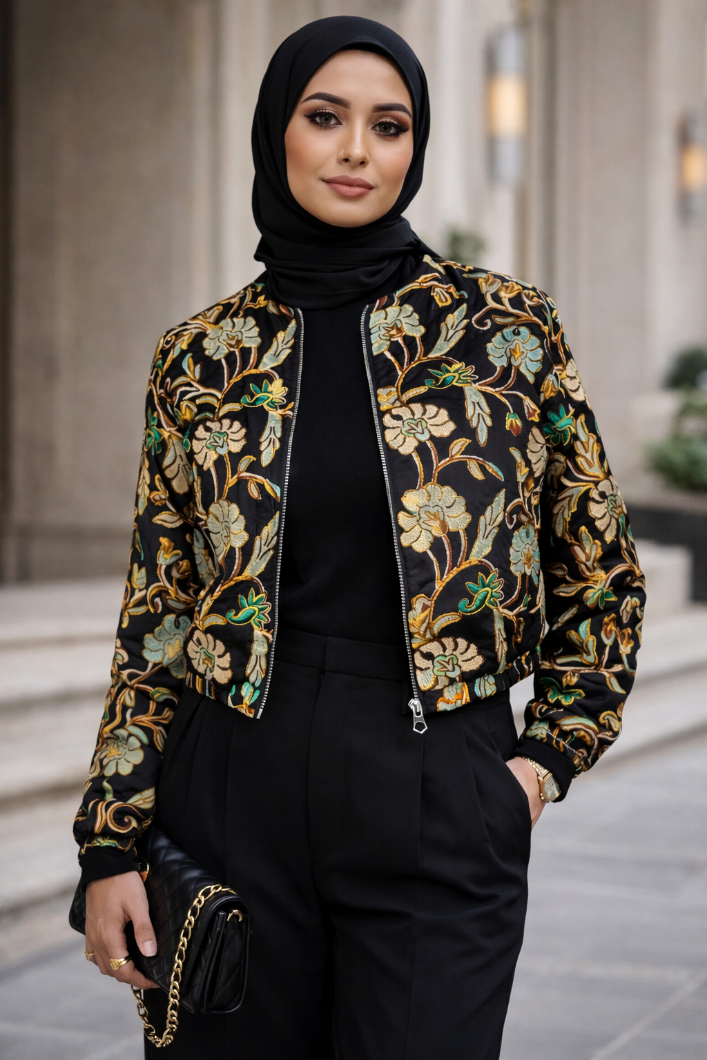 ست کردن کت سوزندوزی با لباس مشکی بلند و اکسسوری طلایی، جلوهای لوکس و خاص ایجاد میکند. این استایل برای مراسم رسمی و مهمانیهای شبانه بسیار مناسب است.