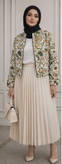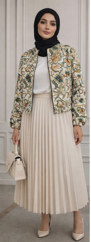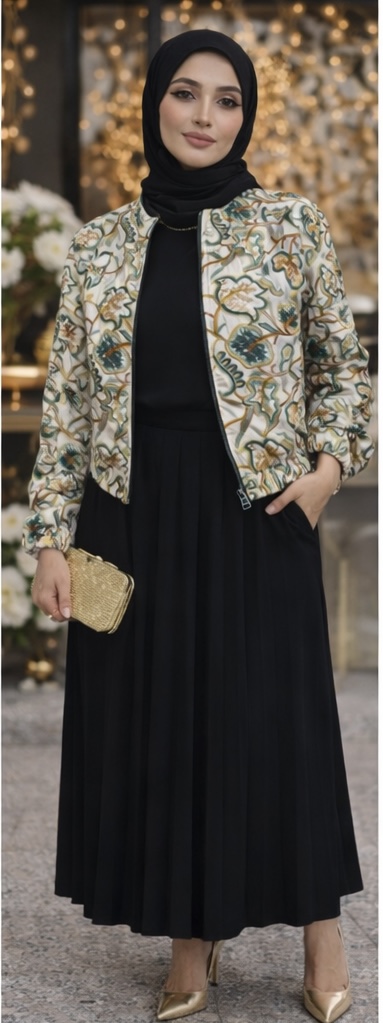 ترکیب کت سوزندوزی با دامن پلیسه و کفش پاشنهدار، انتخابی ایدهآل برای مهمانیهای رسمی، جلسات کاری و دورهمیهای خاص است. این استایل ظاهری آراسته، زنانه و بسیار شیک ایجاد میکند.