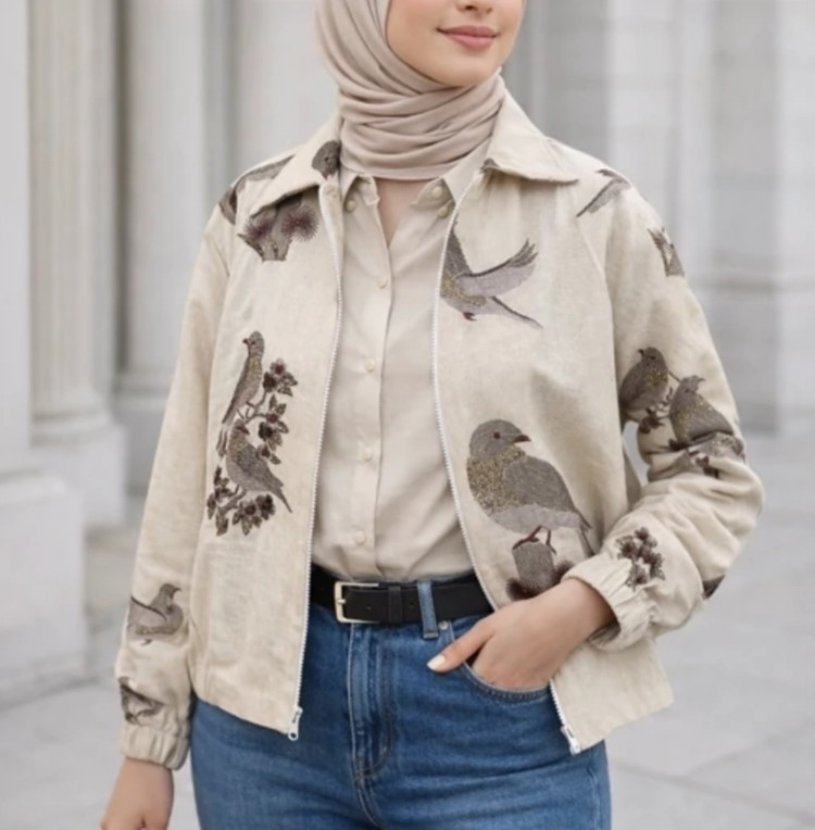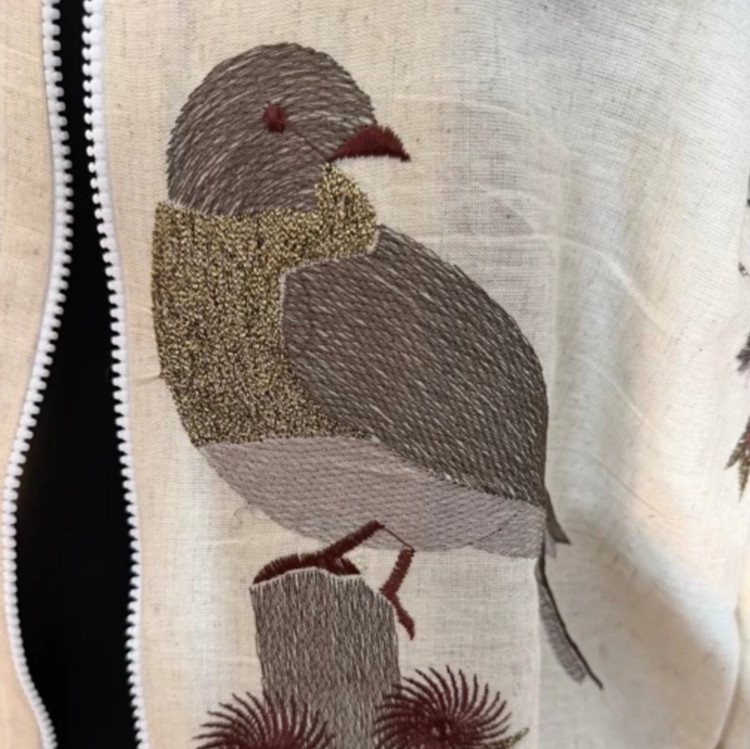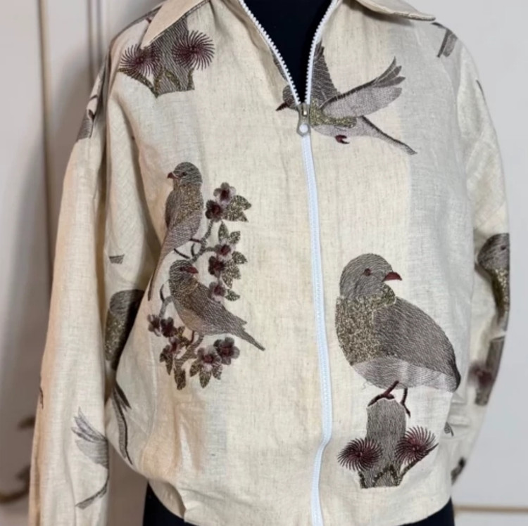 کت لینن سوزن دوزی طرح پرنده
