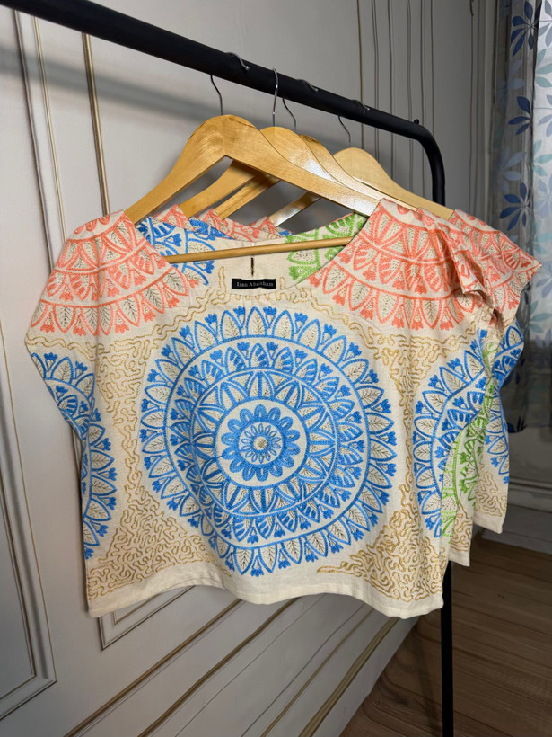 تاپ کوتاه از جنس سوزن هندی با دوخت مزونی عالی، مطابق جدیدترین مدلهای روز و کاربردی برای فصل بهار و تابستان