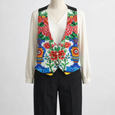 این وست چشمنواز از جنس کرپ باکیفیت و با آستر داخلی دوخته شده و روی بدن فرمی مرتب و خوشدوخت ایجاد میکند. طرح کاشیکاری سنتی ایرانی با رنگهای زنده و شاد، این مدل را به نقطه کانونی هر استایلی تبدیل کرده است.