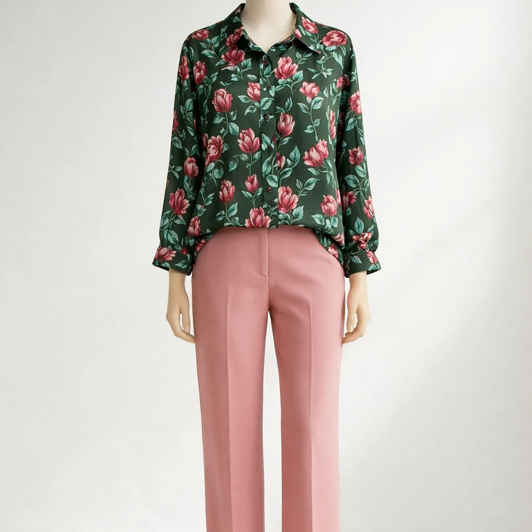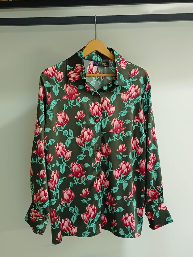 شومیز سیلک گلدار، انتخابی شیک و لطیف برای استایلهای روزمره و مجلسی است. پارچهٔ سیلک با بافت نرم و درخشان خود، حس راحتی و ظرافت را همزمان ارائه میدهد. طرح گلهای درشت و چشمنواز روی زمینهٔ تیره، این شومیز را به گزینهای جذاب برای خانمهایی تبدیل کرده که بهدنبال استایلی خاص و متفاوت هستند.