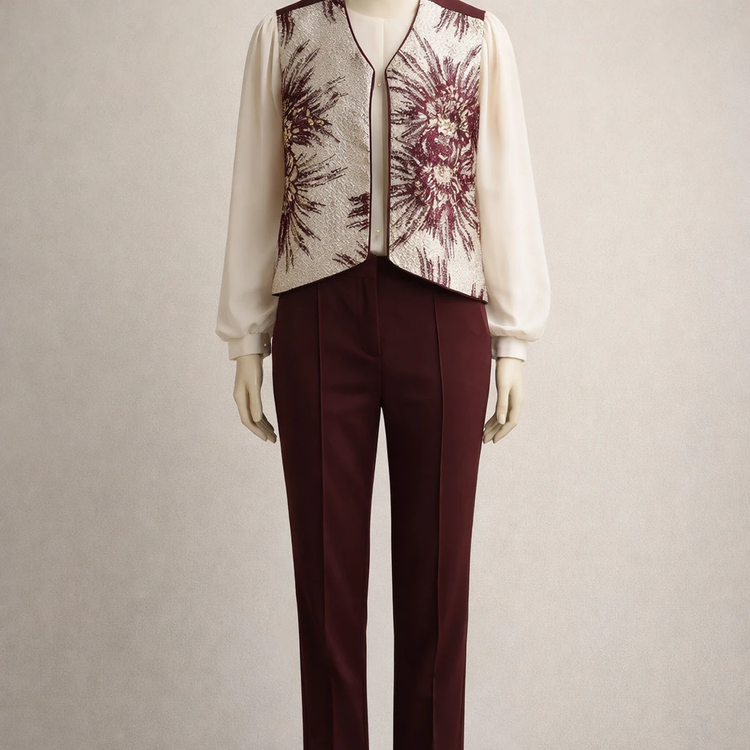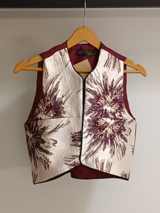 این جلیقه زیبا با پارچه ژاکارد باکیفیت دوخته شده و بهدلیل بافت برجسته و طرح خاص خود، جلوهای کاملاً مجلسی و خاص ایجاد میکند. ترکیب رنگهای هماهنگ و طراحی شکیل آن باعث میشود بهراحتی با انواع شومیزهای ساده یا طرحدار و همچنین شلوار پارچهای یا دامن ست شود.